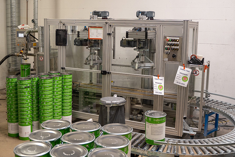 Ein wesentliches Highlight ist die automatisierte IBC-Befüllung, die den Workflow der gesamten Produktion verbessert. Während früher das manuelle Stoppen der Befüllung notwendig war, läuft der Prozess nun automatisch, sicher und ergonomisch. „Die Abfüllung in große IBCs muss nun nicht mehr manuell gestoppt werden. Dies steigert die Effizienz der Produktionslinien massiv“, so Brinkmann. Auch ergonomische Vorteile überzeugen: Dank Rollenbahnen, Gebindezentrierung und automatischen Deckelschließern können Gebinde einfach positioniert und weitertransportiert werden, schwere körperliche Arbeit entfällt. Die Bedienung erfordert nur eine Hand, der Abfüllvorgang bleibt jederzeit im Blick. „Dank der neuen Anlagen von FRICKE ist keine schwere körperliche Arbeit mehr erforderlich und die Gesundheit unserer Mitarbeitenden wird langfristig geschont“, betont Brinkmann.